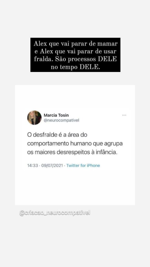 Eu sempre disse que meu filho ia mamar até quando ele quisesse e desfraldar quando ele estivesse pronto.